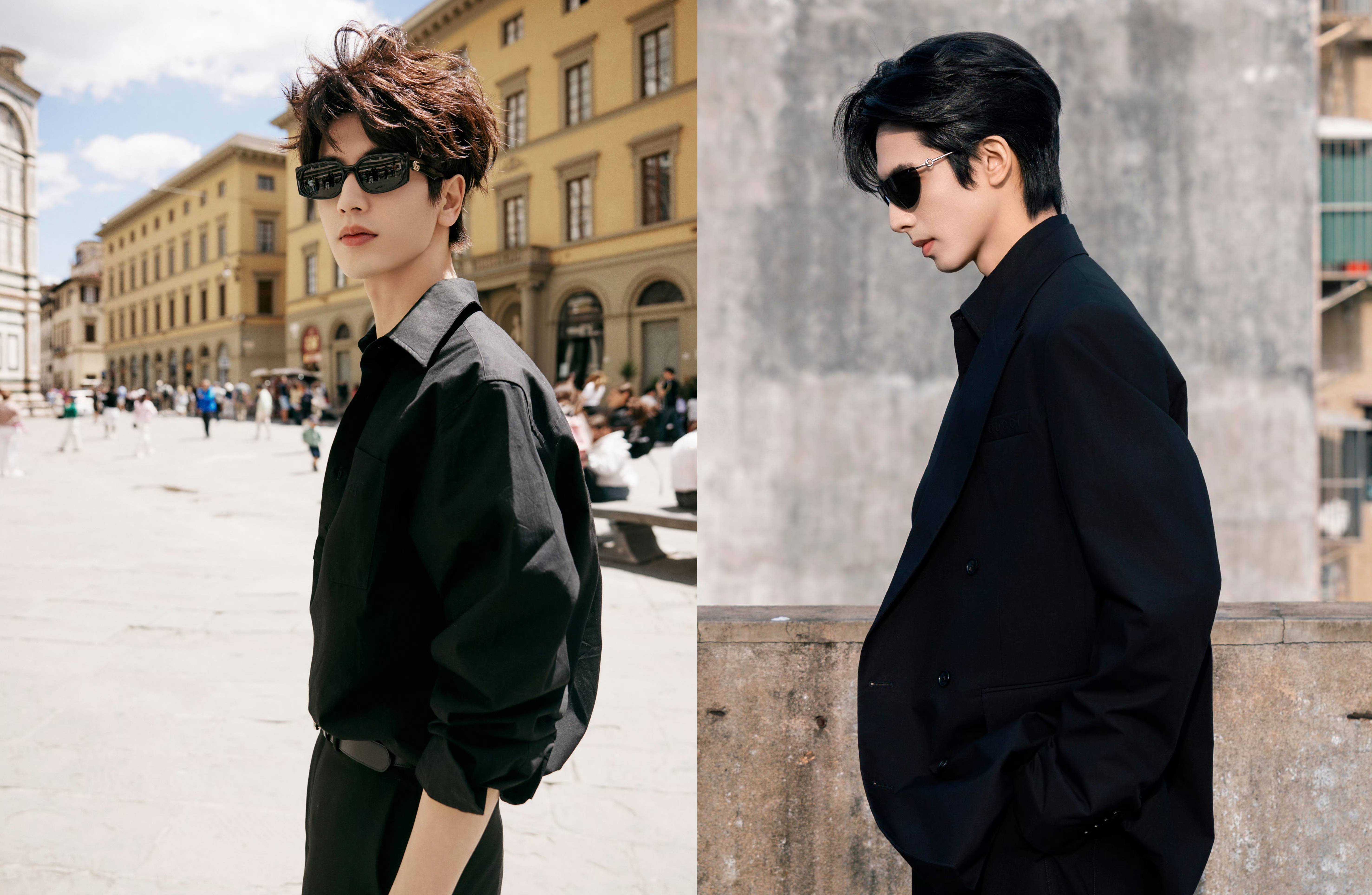 说起来这两位“浓颜系天花板”早就被网友玩梗“共用一张脸”。去年微博之夜同框时,就有粉丝调侃“隔着十米远看还以为是宋威龙在和镜子里的自己打招呼”。这次品牌方更是懂流量密码,故意安排同款造型:一样的湿发背头,同款金属质感腕表,连打光角度都精准复刻。但细看之下两人又各有千秋:宋威龙自带“生人勿近”的拽感,肩宽腰窄的模特身材把西装穿出了高定秀场既视感;张凌赫则靠188cm的优越身高撑起压迫感,冷白皮在镜头前白到发光,活脱脱从漫画里走出来的贵公子。